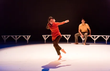 With choreography as its focus, students take four courses that foster the acquisition of thorough skills in creative process. Additionally, in their first year students give two public presentations of their choreography (the fall and spring grad events). In their second year, they work from summer to spring in the creation of an ambitious thesis project, leading to the presentation of the choreography in our state-of-the-art Theatre 14, with production support of professional level for lights, multimedia, sound, costumes, publicity and recording.