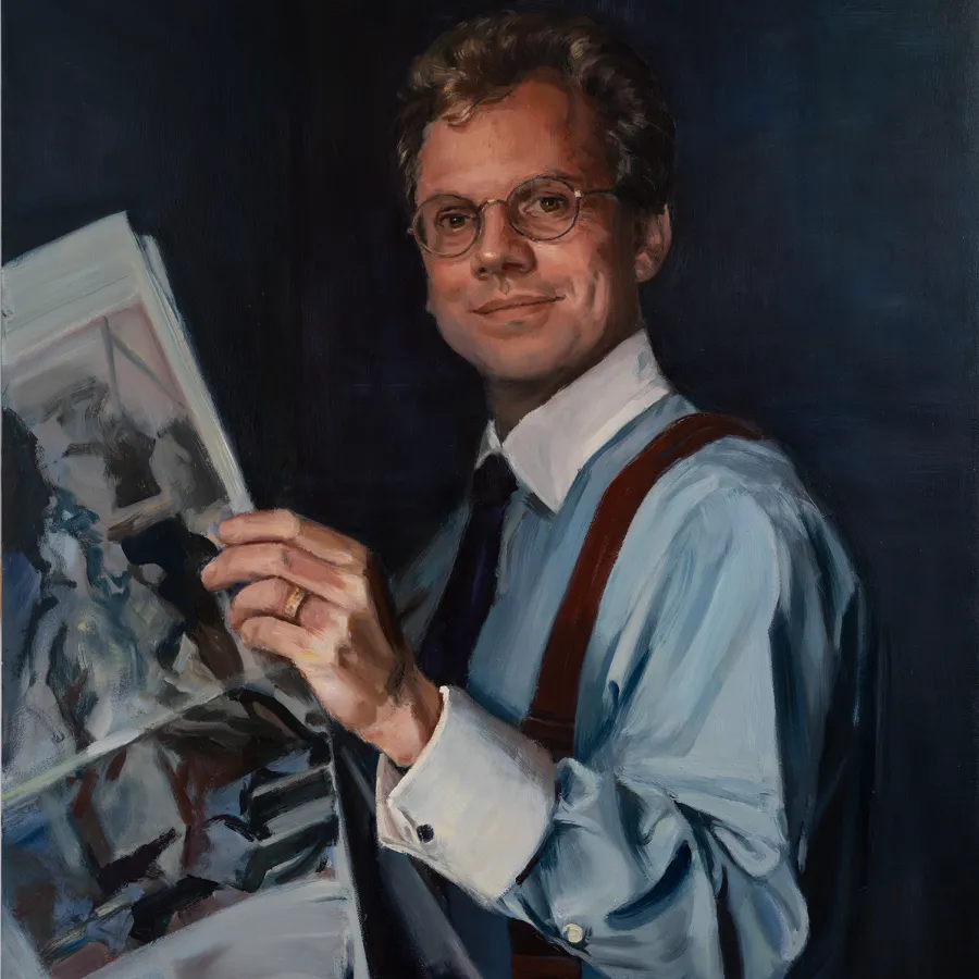 “Without a model sitting for me, this painting required a tremendous amount of trial and error. I just had to look and paint and look and paint,” Schneider says. “One day, some minor sloshing of paint brought Arthur to life. It was like Pinocchio suddenly turning from wood to a boy. I don’t know what I did, but it worked.”