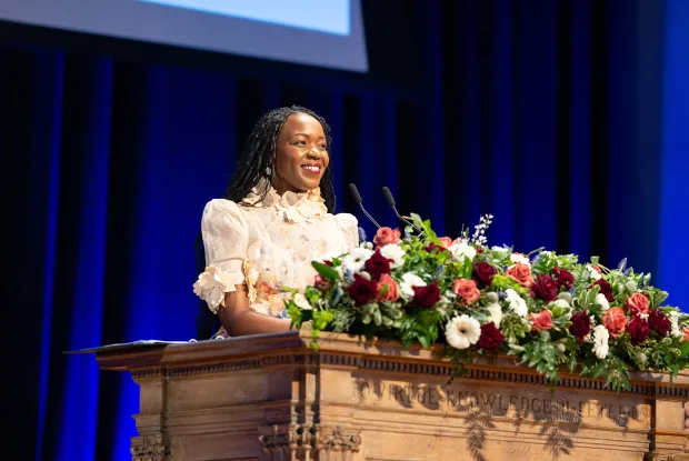 “When I boarded my one-way flight from my small village in Kenya to study abroad, I could not have imagined that I would be standing here today accepting this medal of the highest honor. It’s beyond my wildest dreams, and I am grateful for my Smith community, who supported me and gave me the confidence to pursue my aspirations to their full potential.