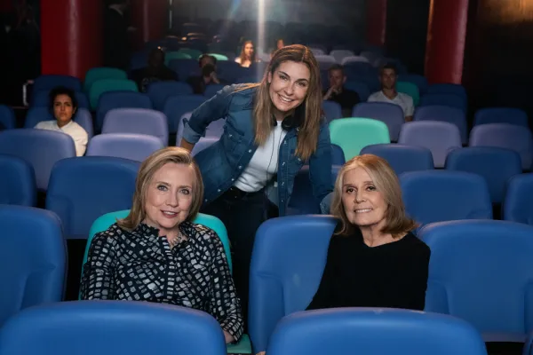 Cynthia Wade ’89 directs Hillary Clinton and Gloria Steinem ’56 in Episode 4 of Apple TV+’s Gutsy. Photograph by Heidi Gutman. Courtesy of Apple.