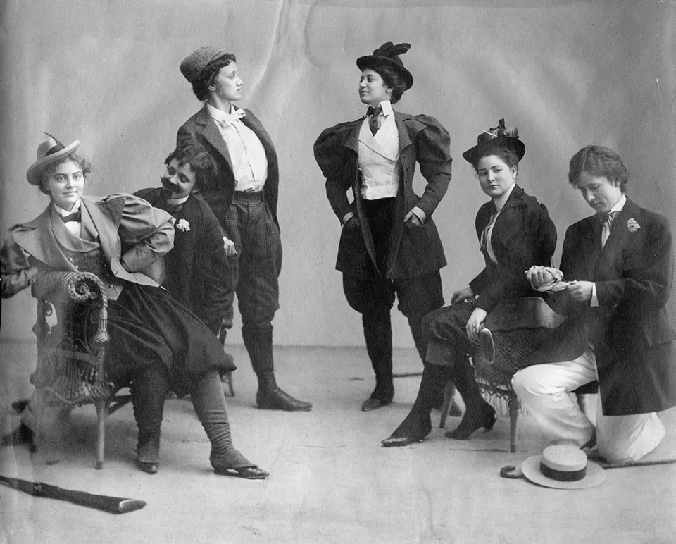 From the initial idea of the “college woman” in the late 19th century to the more fluid concepts of gender today, Smith has always been a gender-transgressive place. Conservative critics of the 19th century were right: Women’s colleges did transform women. Smith nurtured explorations of what it could mean to be a woman, challenging narrow and traditional notions of womanhood and gender expression. Smithies pushed against the boundaries of acceptable gendered behavior in what they studied, their physical activities, their relationships to each other, and their identities. By allowing this exploration, however begrudgingly, the college opened the door to new possibilities for Smith students.