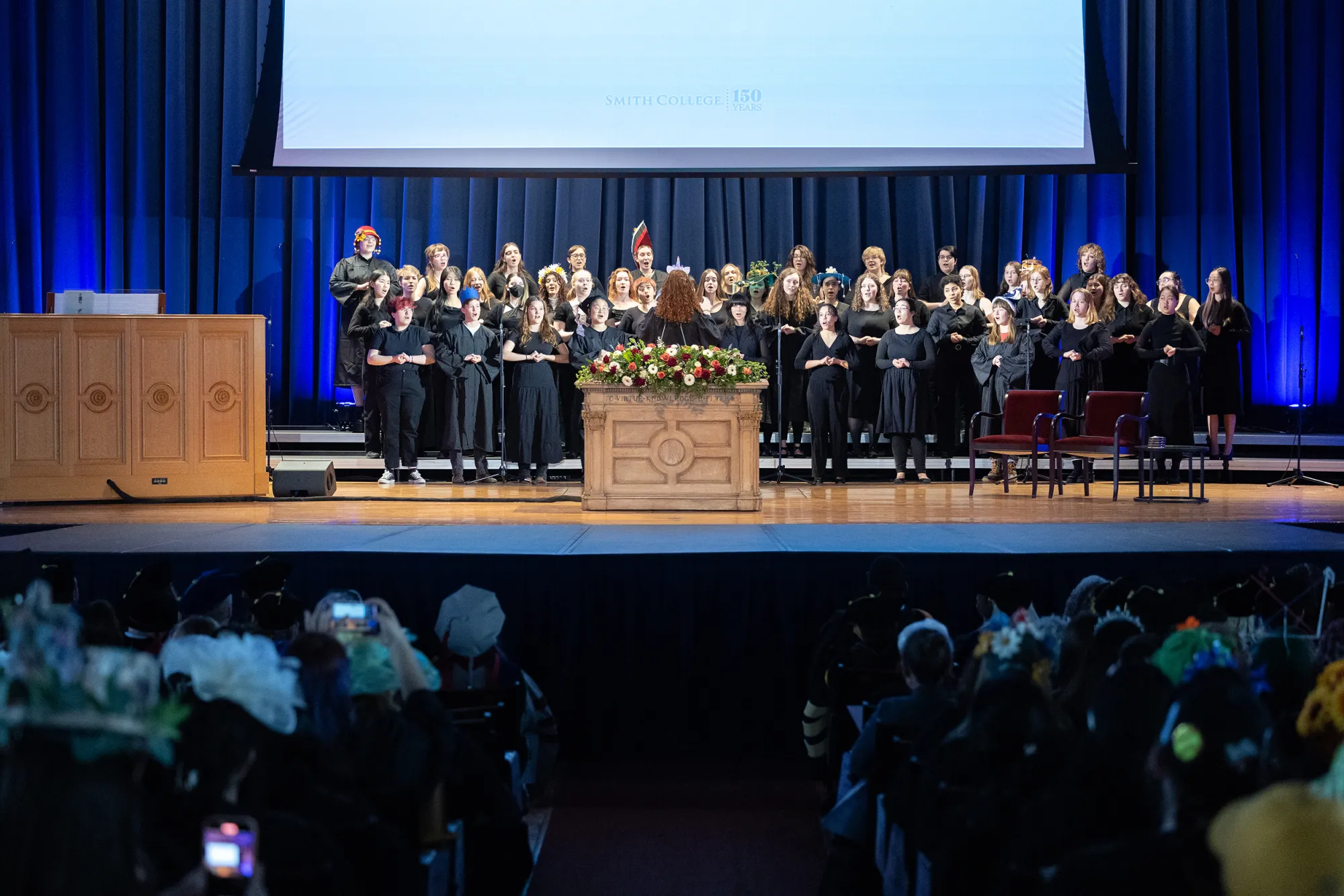 The Smith College Glee Club sings “The Students of Smith” onstage during the 2025 Rally Day ceremony.
