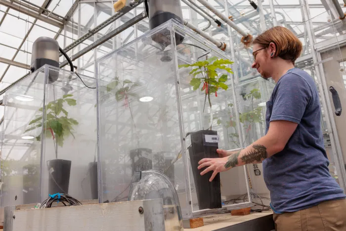 Avery Maltz '25 researching the function of valley fog on forests in Central Appalachia as part of Sybil Gotsch's Forest Ecophysiology Lab at the University of Kentucky.