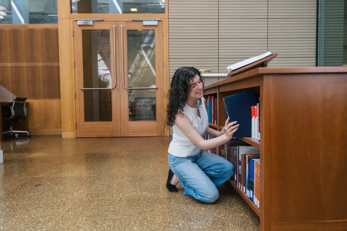 Tallulah Costa '25 interning at the Berkeley Law School Library. She has since earned a fellowship with the Center for the Study of the Presidency and Congress.
